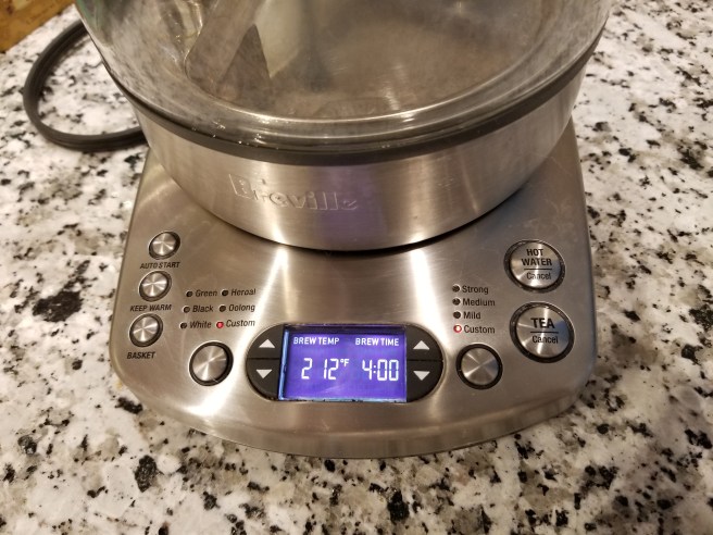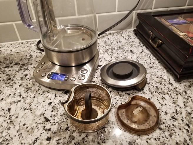 Then I decided to get serious, did my research, and found the Breville. I won’t be breaking any new ground by saying it seems to be known as the best thing out there in its class – I gotta say most of the reviews said the same thing. It’s not cheap, but if you drink tea most days (as I do), and brew a cup multiple times a day (as I do), and like your daily cup(s) to be as consistently good as possible (as I…well, you get it)….then this brewer is worth its weight in gold.