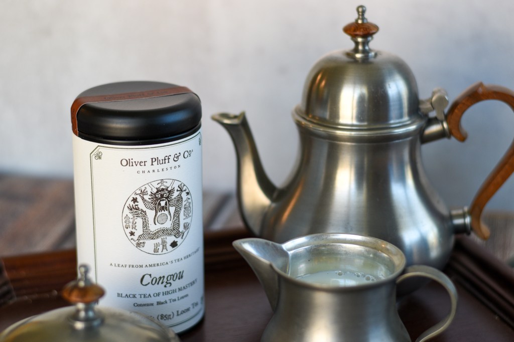 So when I ran across the Oliver Pluff & Co. tea company, I was excited to see their lines of tea, one of which features teas that would have been drank (and thrown overboard!) at the Boston Tea Party. I tried the Congou black tea first, finding it to be a nice smooth tea, with just a hint of smoke, and the flavor of apple noted in the description. The other tea that I have yet to try is the Bohea, the most popular of the colonial teas, and the majority of what was thrown overboard in Boston Harbor.