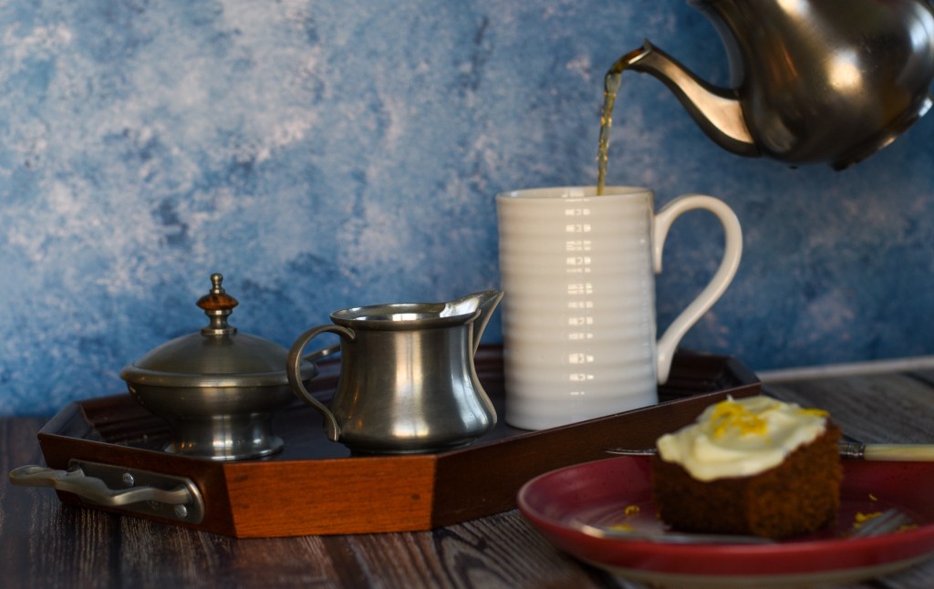 I wanted to also pair the tea with something the colonists might have eaten, so I landed on the recipe for American Gingerbread cake from Anne Byrn’s American Cake book which dates back to that time (with some updates for today’s measures and ingredients). (The first chapter of her book, early American cakes, is posted on publicism.com, though her whole book is available at Amazon to purchase as well. And it’s one that’s well worth adding to your baking recipe collection.)