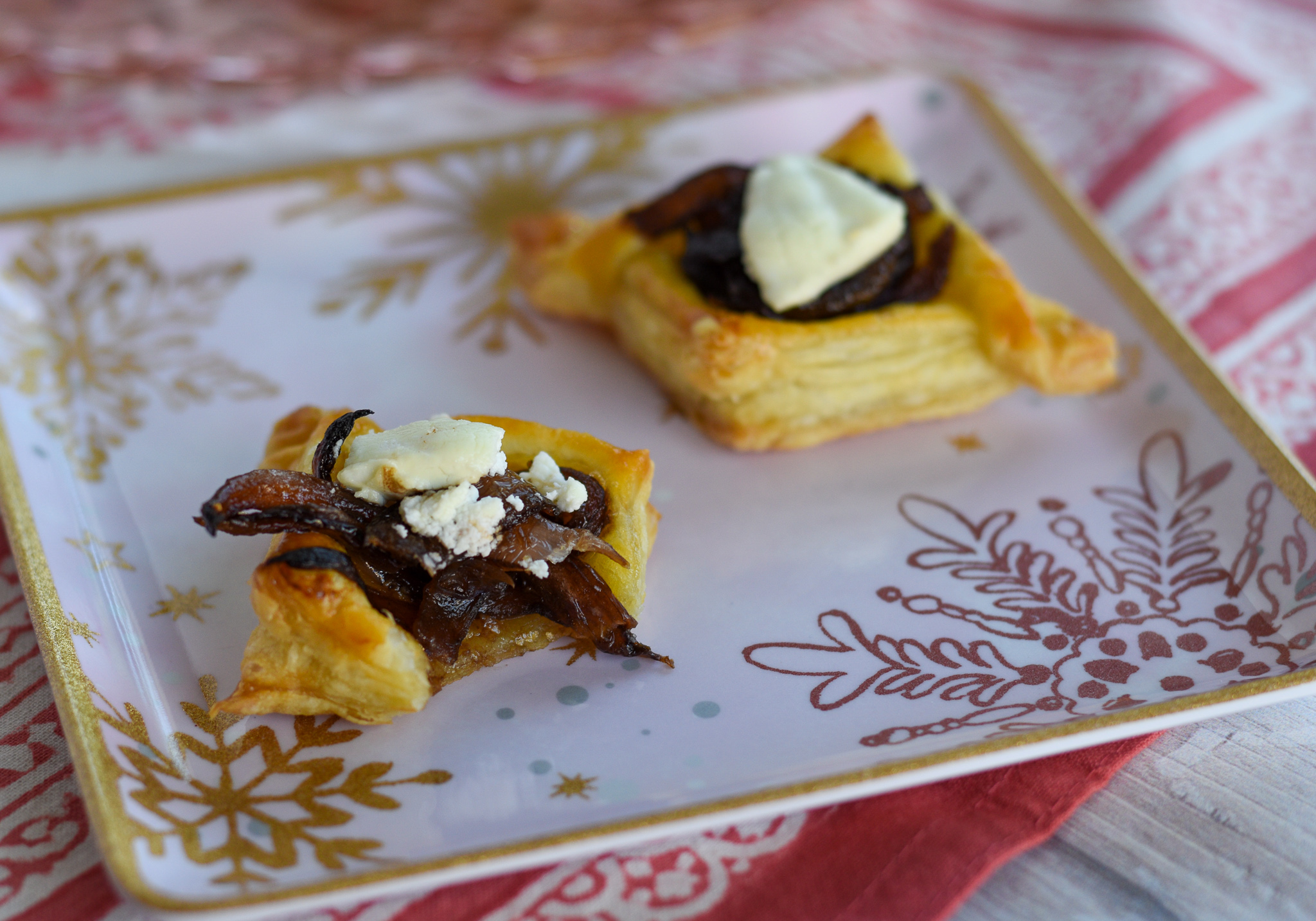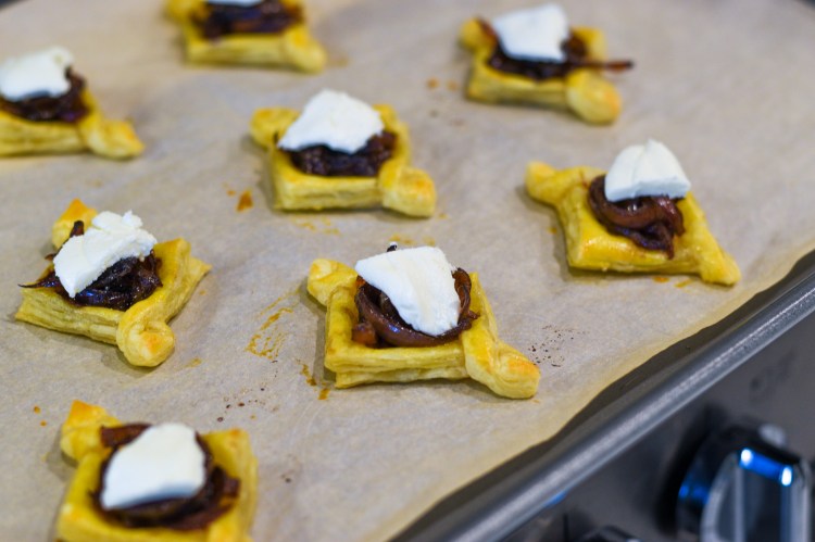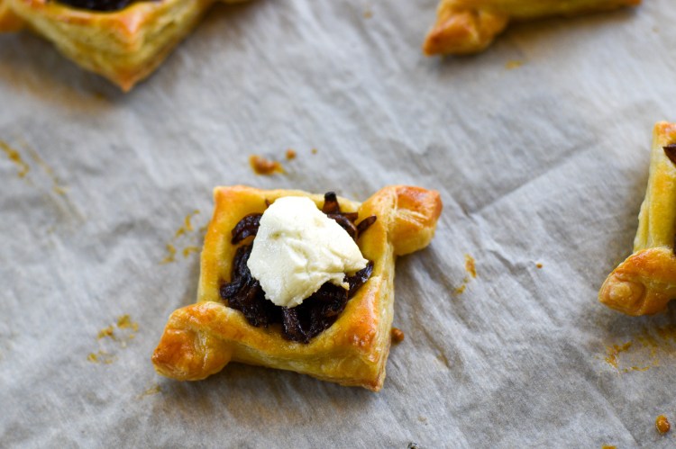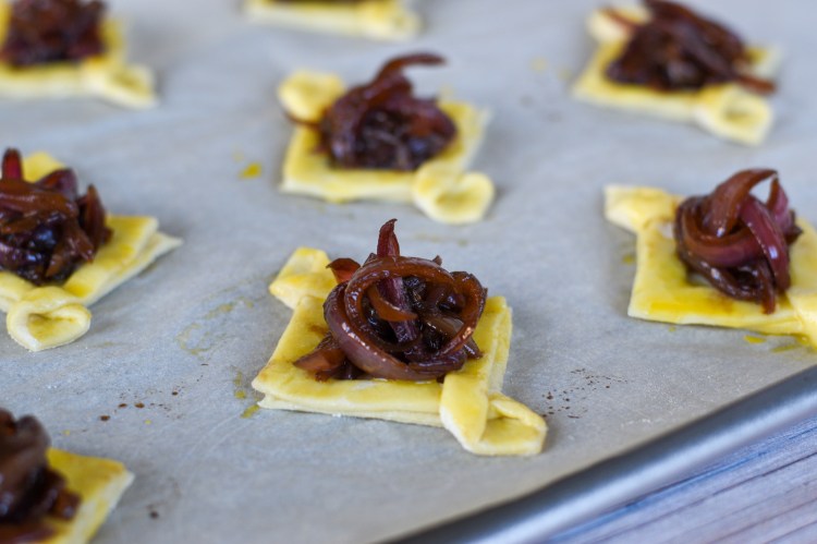 They’re ready to construct at this point, or if you want to make the onion mixture and prep the pastry a day ahead of when you plan to serve them, that works too. Just close the onions up in an airtight container, cover the pastry with cling wrap to keep it from drying out, and assemble before you plan to serve them.