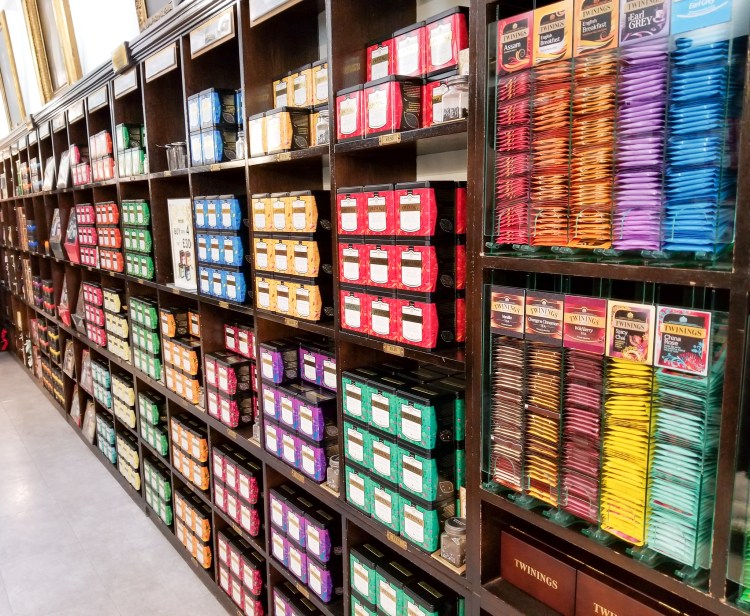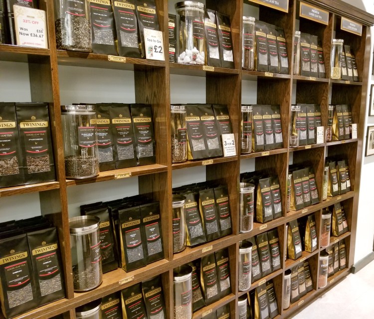At 216 Strand, Twinings isn’t in the Covent Garden square itself; it was a short walk back down the Strand to get to Covent Garden proper and the next tea shop. But I’m very glad I went to this one – not only is Twinings one of the oldest tea shops in London so you get a taste of the history of tea in their small museum area at the one end of the store; I’ll admit to drinking hundreds of cups of their English breakfast over the years. It’s still one of my go-to’s to take with milk to start a regular workday.