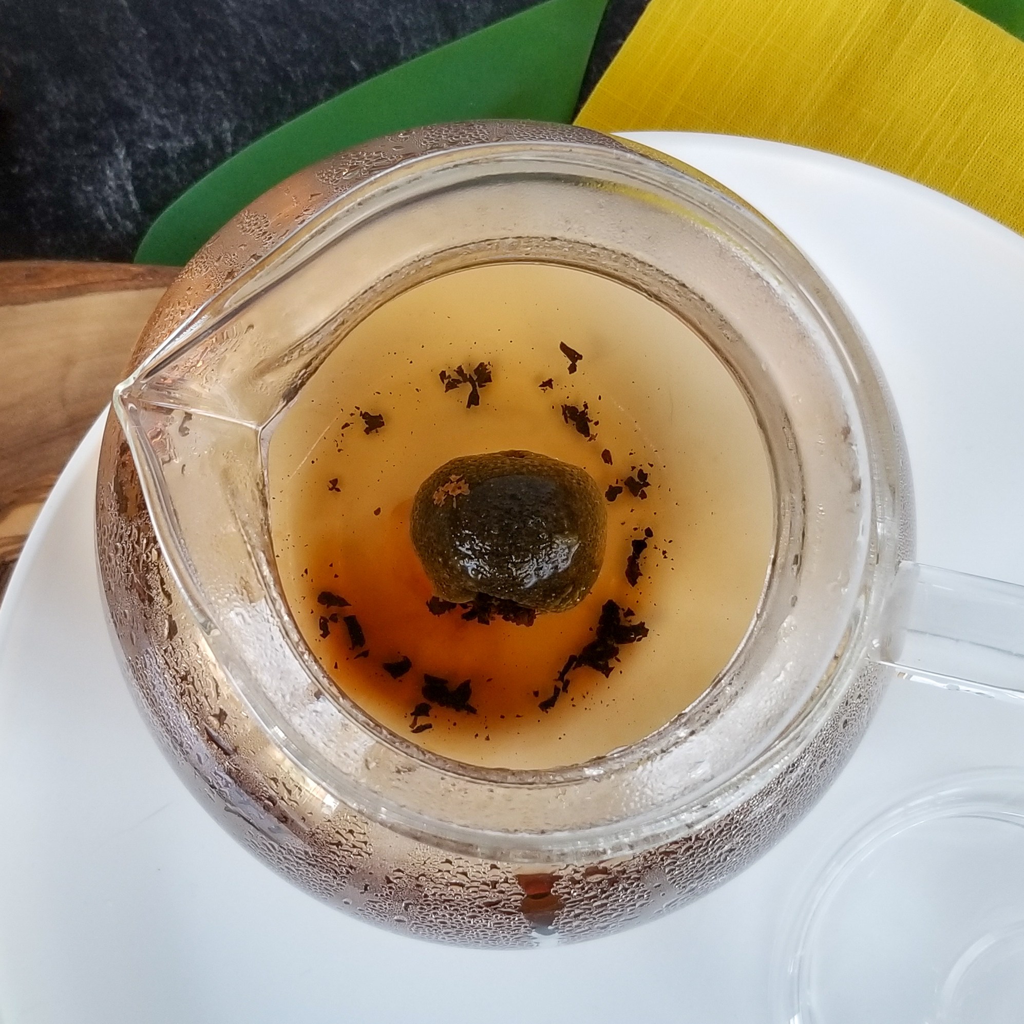 Secondly, I had to figure out how one actually brewed this kind of tea! Luckily, the directions on the Onetea.co site provide that instruction – put one whole tea “ball” into your pot, pour boiling water over it and wait 20-30 seconds only before pouring it out to drink.