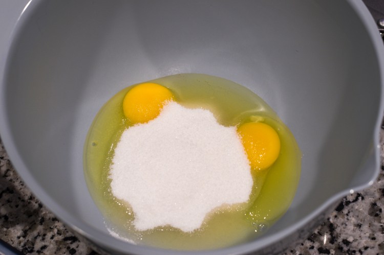 In a separate bowl, whisk the beaten eggs with the caster/superfine sugar for about 5 minutes until the mixture has thickened and doubled in volume, using a handheld or stand mixer. Add the lemon zest and juice of half a lemon to the mixture.