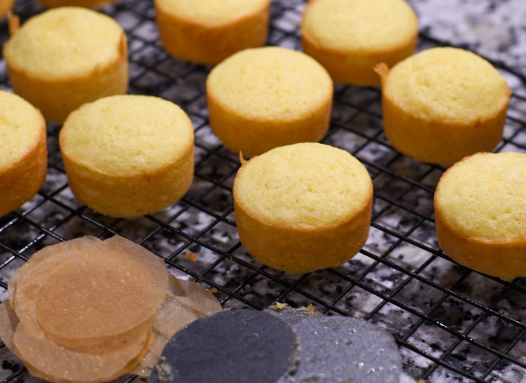 For this recipe I went to one of my favorite afternoon tea recipe books, from Will Torrent, called Afternoon Tea at Home. I went with his “Lemon and polenta drizzle cake” that he bakes as madeleines. Instead of regular cake or madeleine format, I used this Norpro mini cheesecake tin to make my mini cakes. One thing in particular I like about this recipe is his use of polenta in the cake, just for that extra bit of texture.