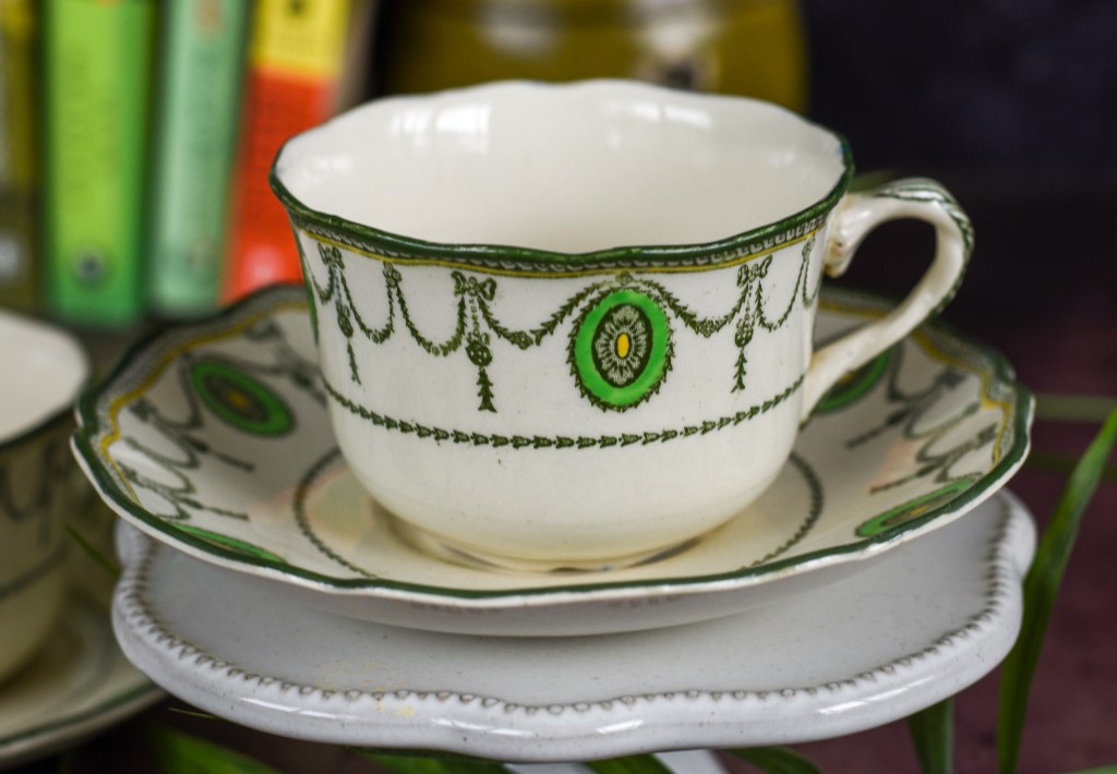 On to my study in green, or Royal Doulton’s Countess pattern – not their modern-day version that in my opinion did nothing to improve on the old. But the older one in green that makes its appearance both in a 1920s mystery series, as well as an end-of-the 19th century English drama.