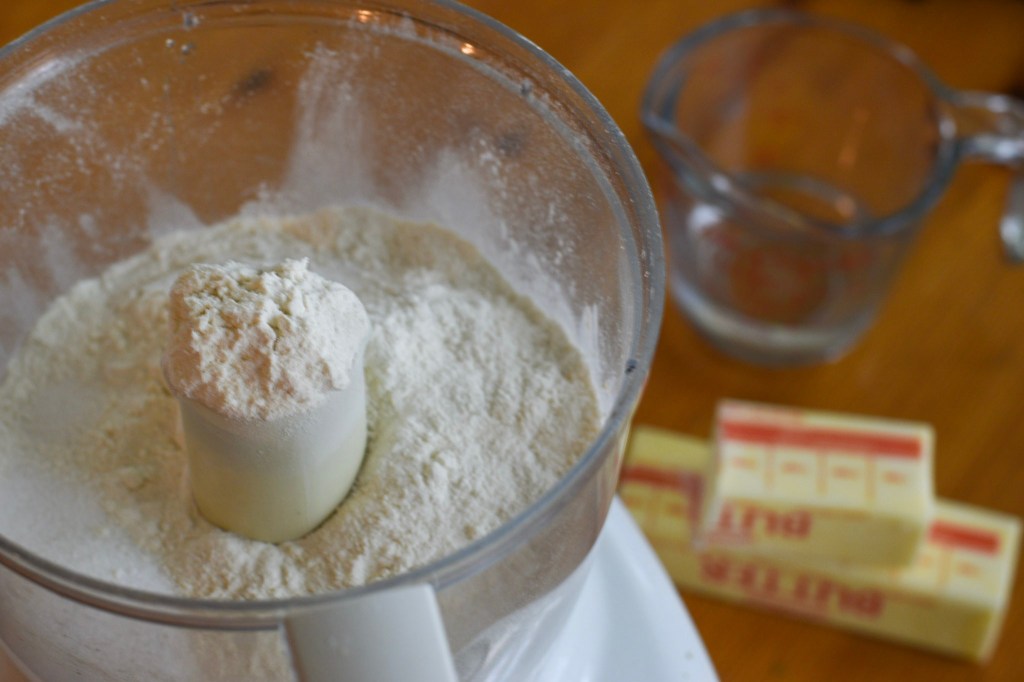 To make the crust, add the dry ingredients to the food processor (no need to clean it in between), and pulse briefly to combine. Add the cold butter and process until the butter is the size of peas, about 5 seconds. Add the cold water in and process until just moistened and crumbly, about another 5 seconds.
