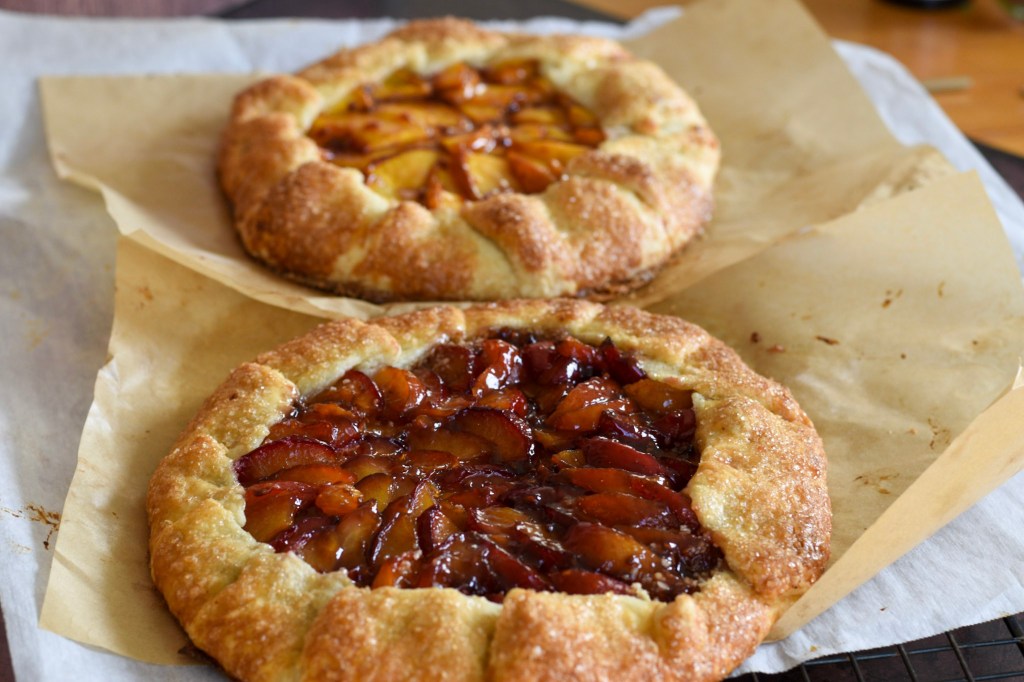 Given I didn’t have enough plums, however, I ended up making two smaller galettes instead of one large one, and used peaches for the second tart. I also rolled them out once to size before refrigerating, rather than rolling it out partially, then to final size after refrigeration.