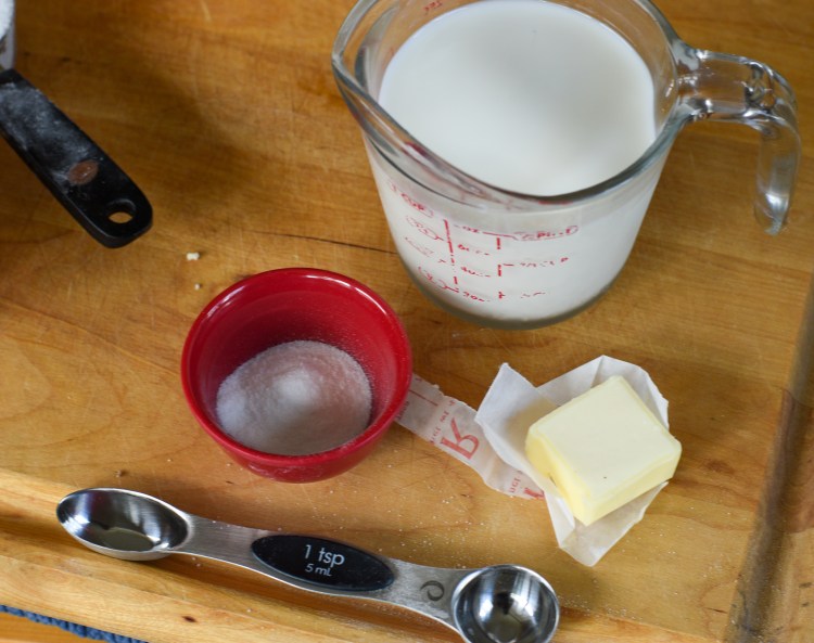 - 7 Tbsp. unsalted butter, (cube while cold, let sit until room temp)