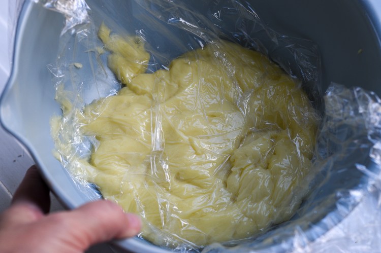 Make sure you cover the pastry cream with plastic wrap before putting it in the fridge to cool.