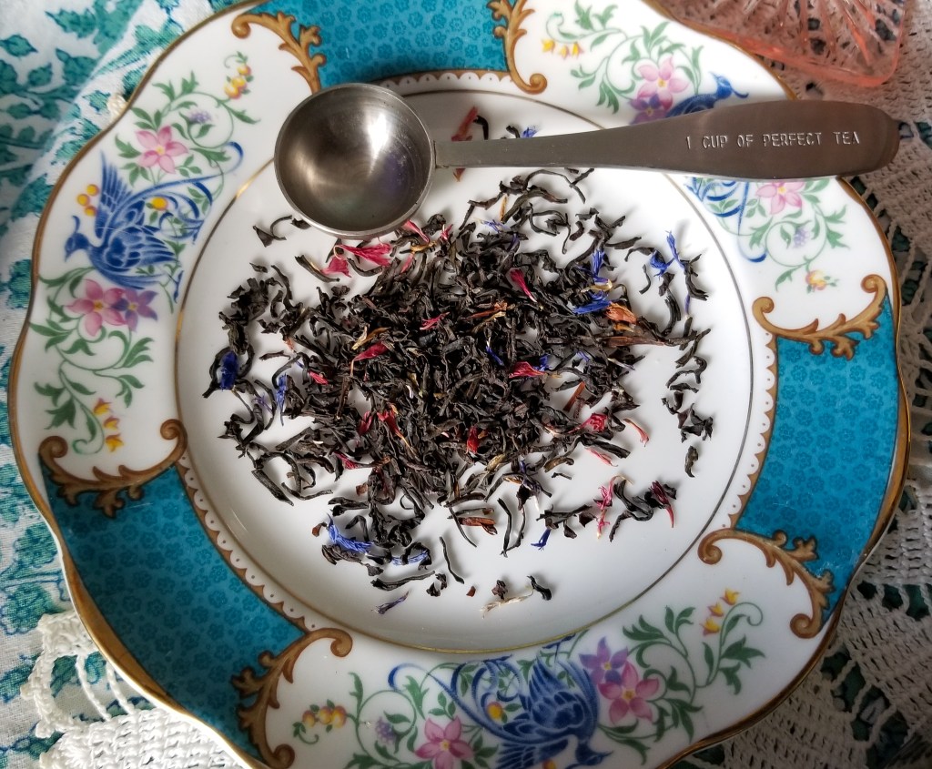 It gets packaged up in one of the lovely F&M tins with your own personalized label. I stuck with a malty black tea, heavier on the Assam than the other earthy/grassy black African tea leaf, so more intensity that goes well with milk. I added both blue and dark pink cornflower for color.