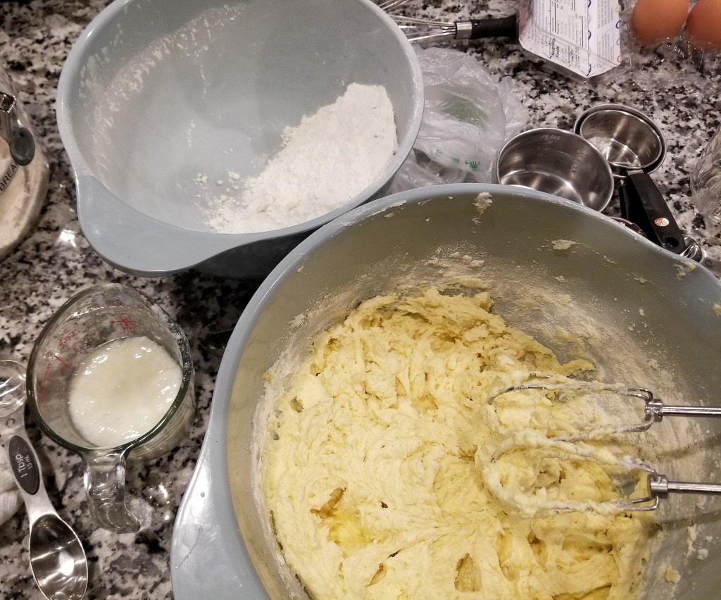Using a stand or hand mixer, beat the butter and sugar at medium-high speed until fluffy, or 3-4 minutes (trust me, the lightness and consistency of the butter needs this time). Scrape the sides of the bowl as needed. On low speed, add the eggs one at a time, making sure they are combined after each one. Beat in the vanilla.