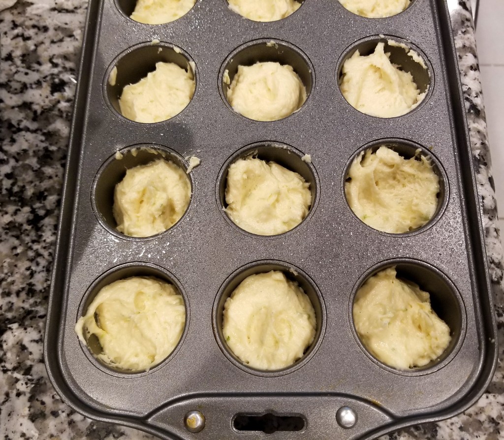 Preheat the oven to 350° F. Spray your mini-cake pan (Norpro mini cheesecake is my pan of choice) with cooking spray. Helpful with this pan to put a little parchment at the bottom to make them easier to come out.To make the cake – in a large bowl, whisk together the flour, baking powder, baking soda and salt. Stir in the lime zest and set aside. In a measuring cup, stir together the milk and lime juice and set aside.