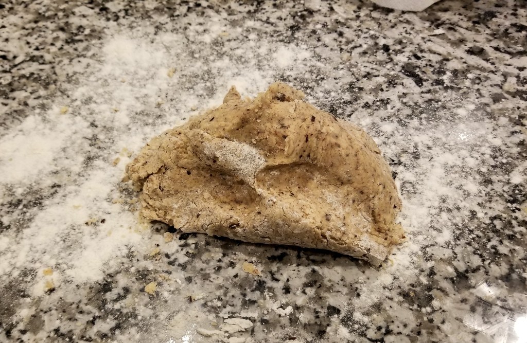 I mixed in the liquid with the flour at first with a fork, but used my hands to bring it together in the bowl, then to turn it out and knead it just a few times on the floured surface to bring it together. It doesn’t take much to get it in shape to begin rolling, and you don’t want to overwork the dough.