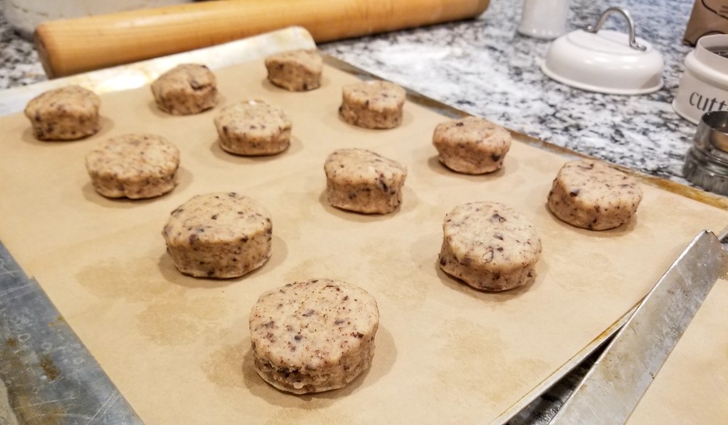 I used the smallest one of my biscuit cutter set, the one that’s 2 inches in diameter. These are a little smaller than I normally make, but they turned out great. (And true confessions, it works well with my current Weight Watchers program, with 1 of these 2-inch scones equalling 7 points!)