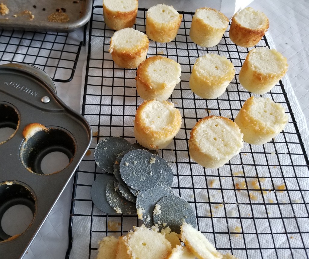 I applied the frosting fairly liberally, going back once every cakelet had some frosting on it to add more and use up all the frosting.